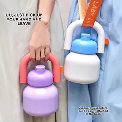Botellas de agua portátiles de 33oz con asa, Pajita, botella de bebida de acero inoxidable 316, taza deportiva aislada sin BPA